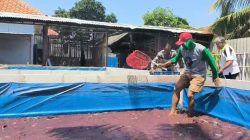 Bhabinkamtibmas Desa Tambak Sawah Polsek Waru Aiptu Sugeng melakukan pengecekan sarana dan prasarana Pekarangan Pangan Bergizi (P2B) budidaya ikan lele warga setempat, pada Senin (1/4/2025).