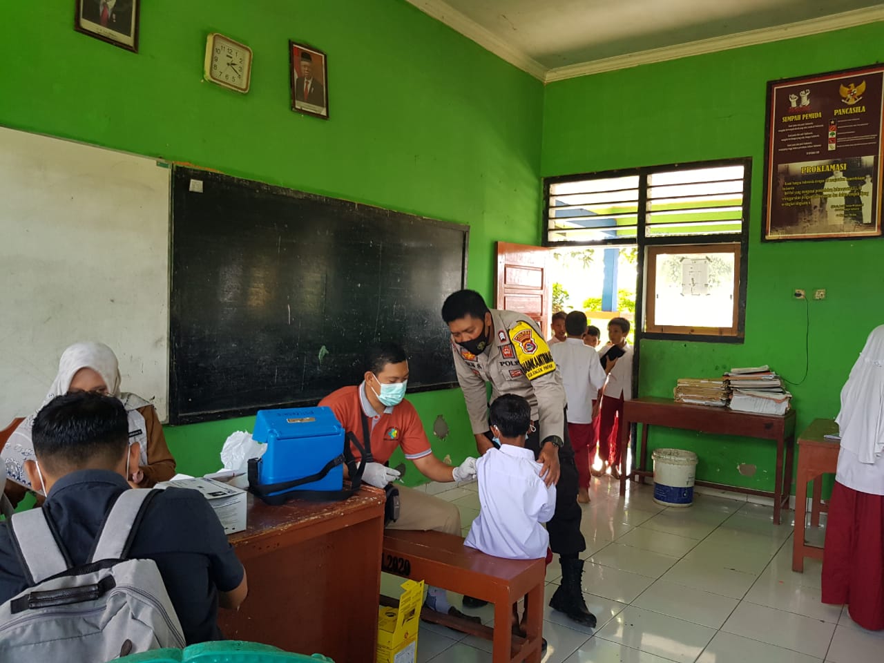 Dalam kesempatan tersebut Bhabinkamtibmas melaksanakan Pengamanan terhadap kegiatan vaksinasi dari Tim Nakes Pkm Batuyang kepada Siswa/Siswi yang bertempat SDN No 3 Bagik Papan dengan jumlah capaian sebanyak 80 orang.