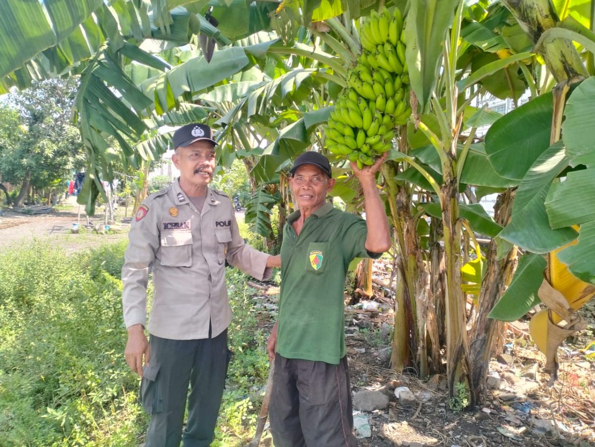 Dalam upaya mendukung ketahanan pangan Polresta Sidoarjo Polda Jatim dan program Asta Cita Presiden Republik Indonesia Bapak Prabowo Subianto, sekaligus meningkatkan kesejahteraan masyarakat dan swasembada pangan, Bhabinkamtibmas Desa Entalsewu, Kecamatan Buduran, Kabupaten Sidoarjo, Aiptu Ichsan Herdianto, turun langsung mendampingi warga dalam merawat tanaman pisang yang ditanam di lahan pekarangan, Rabu (14/5/2025) pagi.