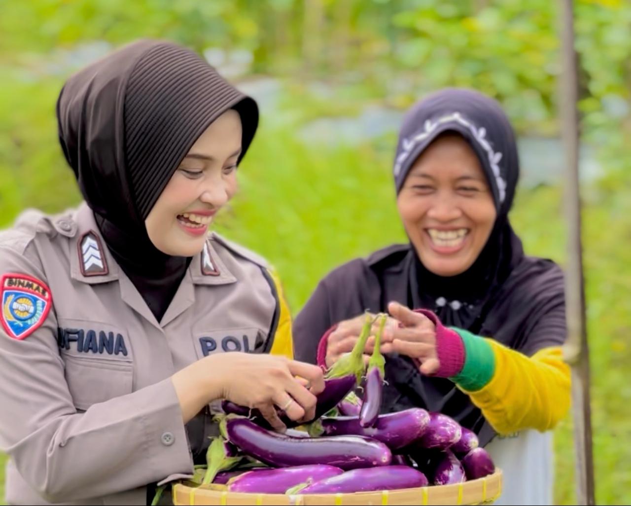Sebagai bentuk nyata dukungan terhadap program ketahanan pangan, Brigadir Sufiana selaku Bhabinkamtibmas Kelurahan Gayamdompo turut serta mendampingi warga dalam kegiatan panen terong di kebun pekarangan milik warga