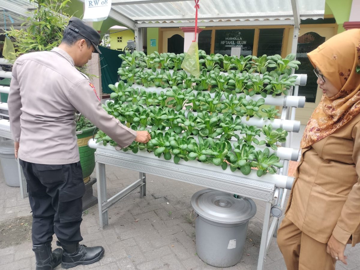 Dalam upaya memperkuat ketahanan pangan Polresta Sidoarjo Polda Jawa Timur dan arahan Kapolresta Sidoarjo Kombes Pol Christian, Bhabinkamtibmas Desa Tenggulunan, Aipda Achmad Arifin, melaksanakan pengecekan dan pendampingan kegiatan Program Pekarangan Pangan Bergizi (P2B) dengan metode hidroponik, Selasa (10/6/2025).