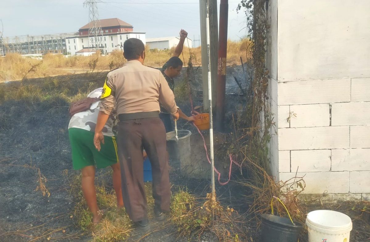 Untuk mencegah semakin meluasnya api yang titik kebakaran dekat dengan bangunan, Bhabinkamtibmas Desa Tambak Kalisogo dan Babinsa dibantu warga, bergotong royong memadamkan api dengan perlengkapan seadanya.