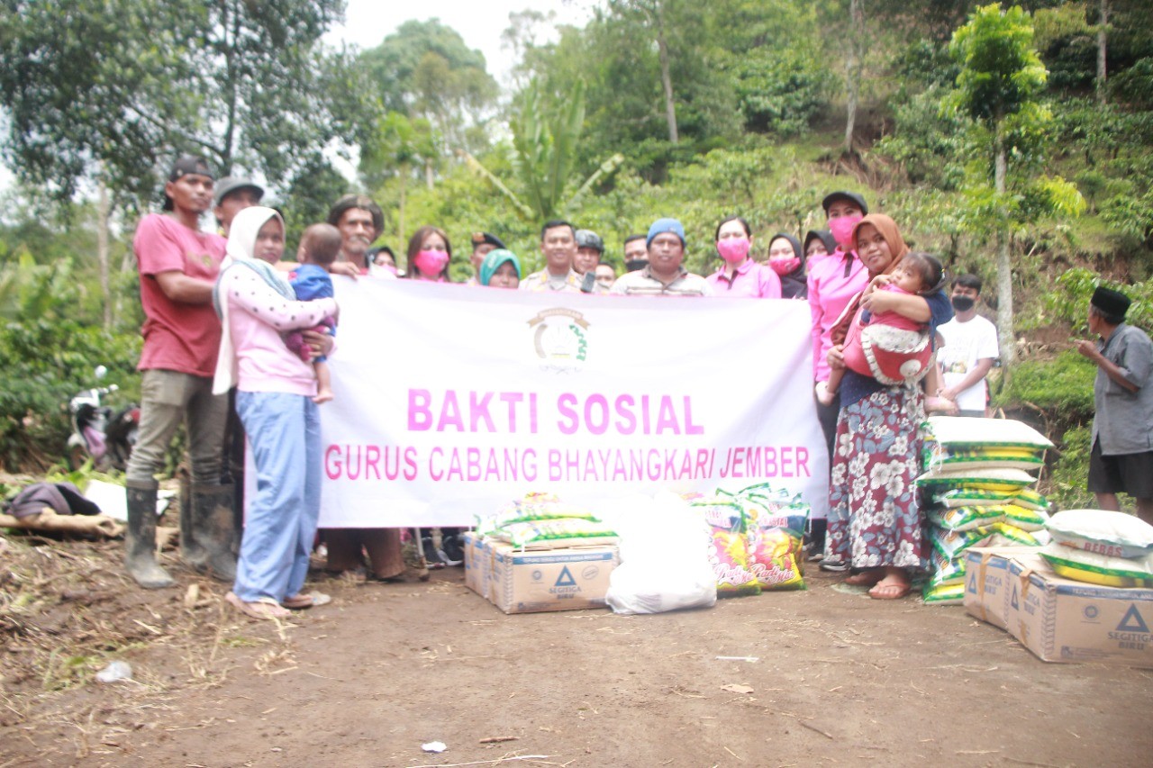 Bhayangkari Polres Jember  yang dipimpin oleh Ketua Bhayangkari Cabang Jember Ima Herry menyalurkan bantuan paket sembako kepada warga yang terdampak musibah tanah longsor dan banjir di padukuhan Klowangan Dusun Tanah Manis Desa Sidomulyo Kecamatan Silo Kabupaten Jember. Sabtu (13/11/2022)