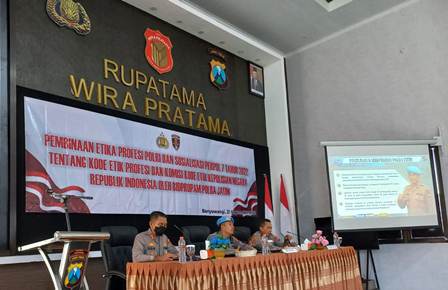 Bidang Profesi dan Pengamanan (Bidpropam) Polda Jawa Timur, mensosialisasikan Peraturan Kepolisian (Perpol) Nomor 7 Tahun 2022 tentang Kode Etik Profesi dan Komisi Kode Etik Polri dan pembinaan etika profesi Polri di seluruh jajaran Satuan Wilayah Polda Jawa Timur.