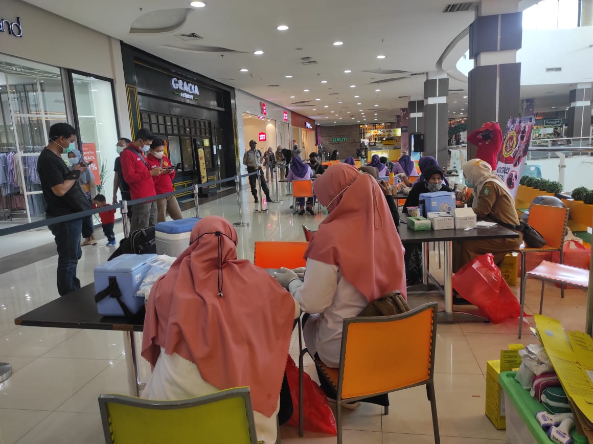 Selasa, 26/7/2022. Dalam mengantisipasi peningkatan Kasus Covid-19 yang melanda di Indonesia dan untuk mencegah Vaksinasi Varian baru BA 4 dan BA 5, Binda Jatim telah lakukan penyuntikan Vaksinasi Masal yang digelar secara langsung di Lippo Plaza Sidoarjo, tepatnya di Jalan Jati Raya No.1 Jati Kec. Sidoarjo.Kab. Sidoarjo.