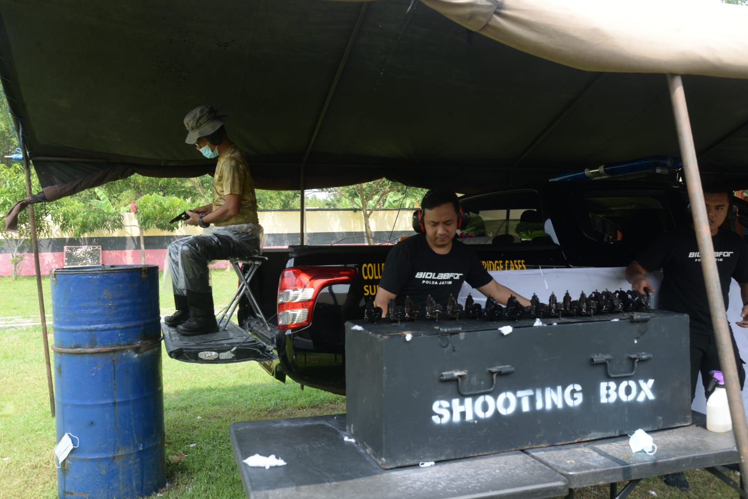 Dalam pelaksanaannya uji balistik kali ini khusus untuk senpi pendek, masing-masing senpi diregistrasi diberi nomor urut, setiap satu senpi revolver dan pistol di uji dengan ditembakkan sebanyak 2 kali tembakan (dengan 2 amunisi) pada tempat yang telah disediakan.