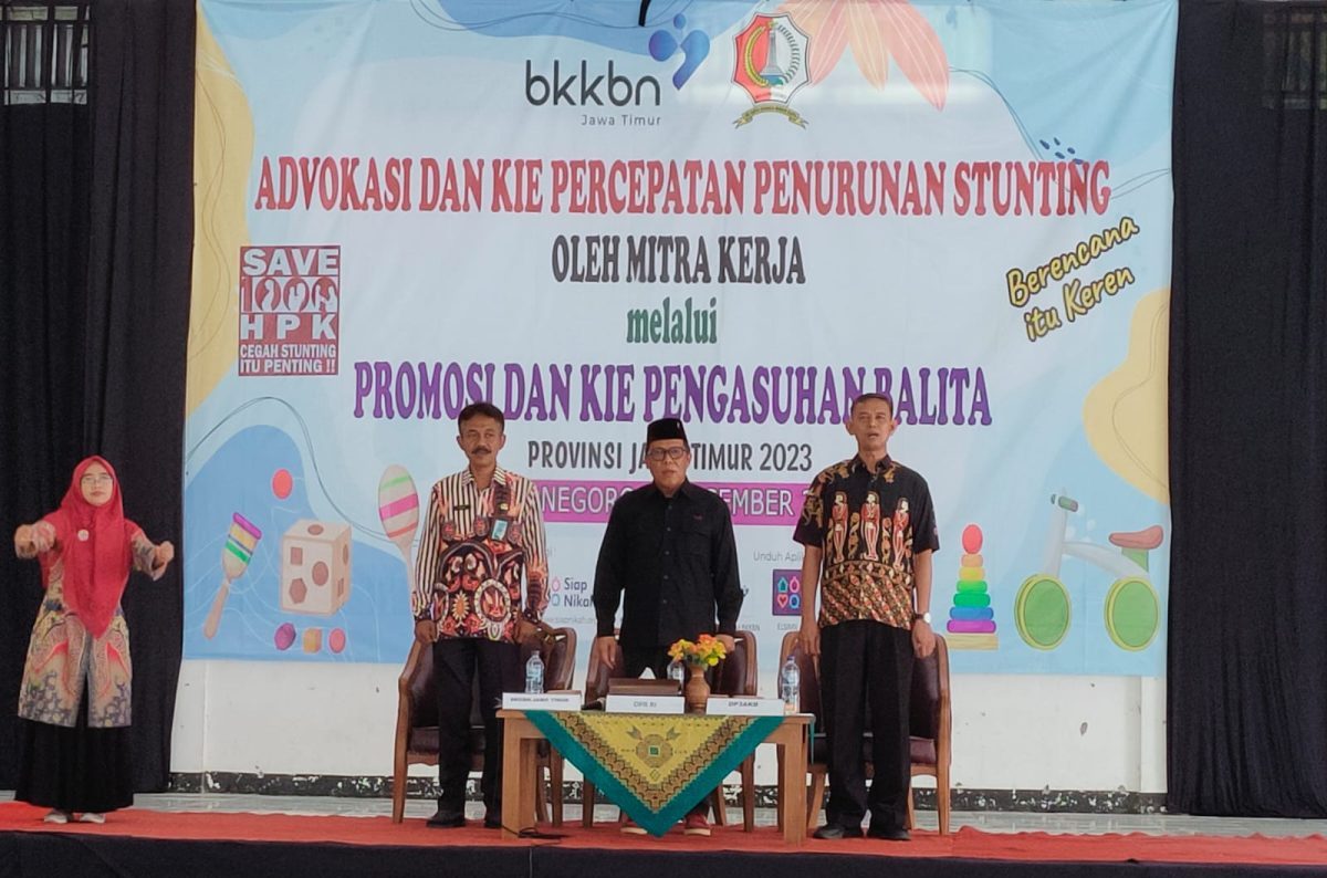 Perwakilan BKKBN Provinsi Jawa Timur bersama Dinas P3AKB Kabupaten Bojonegoro menyelenggarakan kegiatan Advokasi dan KIE Percepatan Penurunan Stunting oleh Mitra Kerja melalui Promosi dan KIE Pengasuhan Balita, di Islamic Center Bojonegoro,Minggu (3/12/2023).