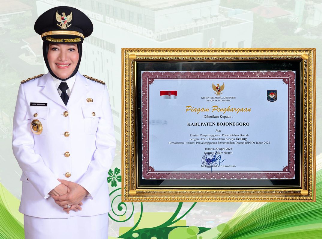Pemerintah Kabupaten Bojonegoro menduduki peringkat 10 Hasil Evaluasi Penyelenggaraan Pemerintahan Daerah (EPPD) tahun 2022 pada kategori pemerintah daerah berkinerja tertinggi secara nasional. Penghargaan ini diterima Sabtu (29/4/2023) di Makassar, Provinsi Sulawesi Selatan saat Puncak Peringatan Hari Otonomi Daerah XXVII tahun 2023.