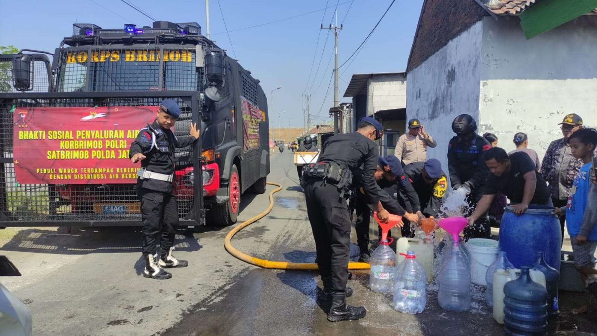 Wadanki Kompi 3 Batalyon A Pelopor Porong, Iptu Dirsam mengatakan, bentuk kepedulian dari Brimob Porong kepada warga Gempolsari melalui bantuan air bersih.