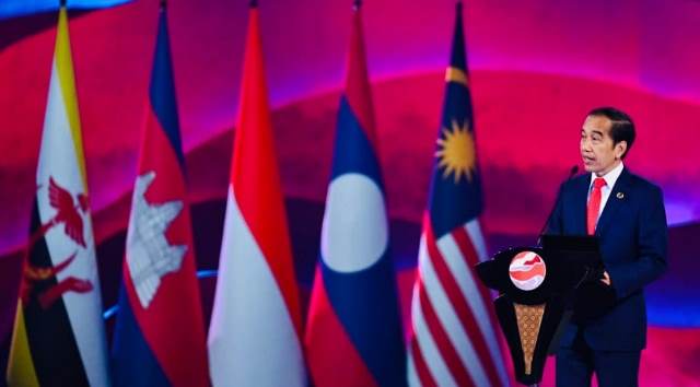 Presiden Joko Widodo secara resmi membuka Konferensi Tingkat Tinggi (KTT) ke-43 ASEAN di Plenary Hall, Jakarta Convention Center (JCC), Jakarta, Selasa, 5 September 2023.