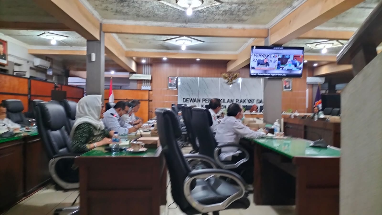 Bupati Bojonegoro, Anna Mu’awanah menyampaikan capaian kinerja Pemerintah Kabupaten Bojonegoro terkait pekerjaan yang tidak selesai di tahun 2022 pada rapat evaluasi Badan Anggaran (Banggar) DPRD Bojonegoro, Rabu (11/1/2023).