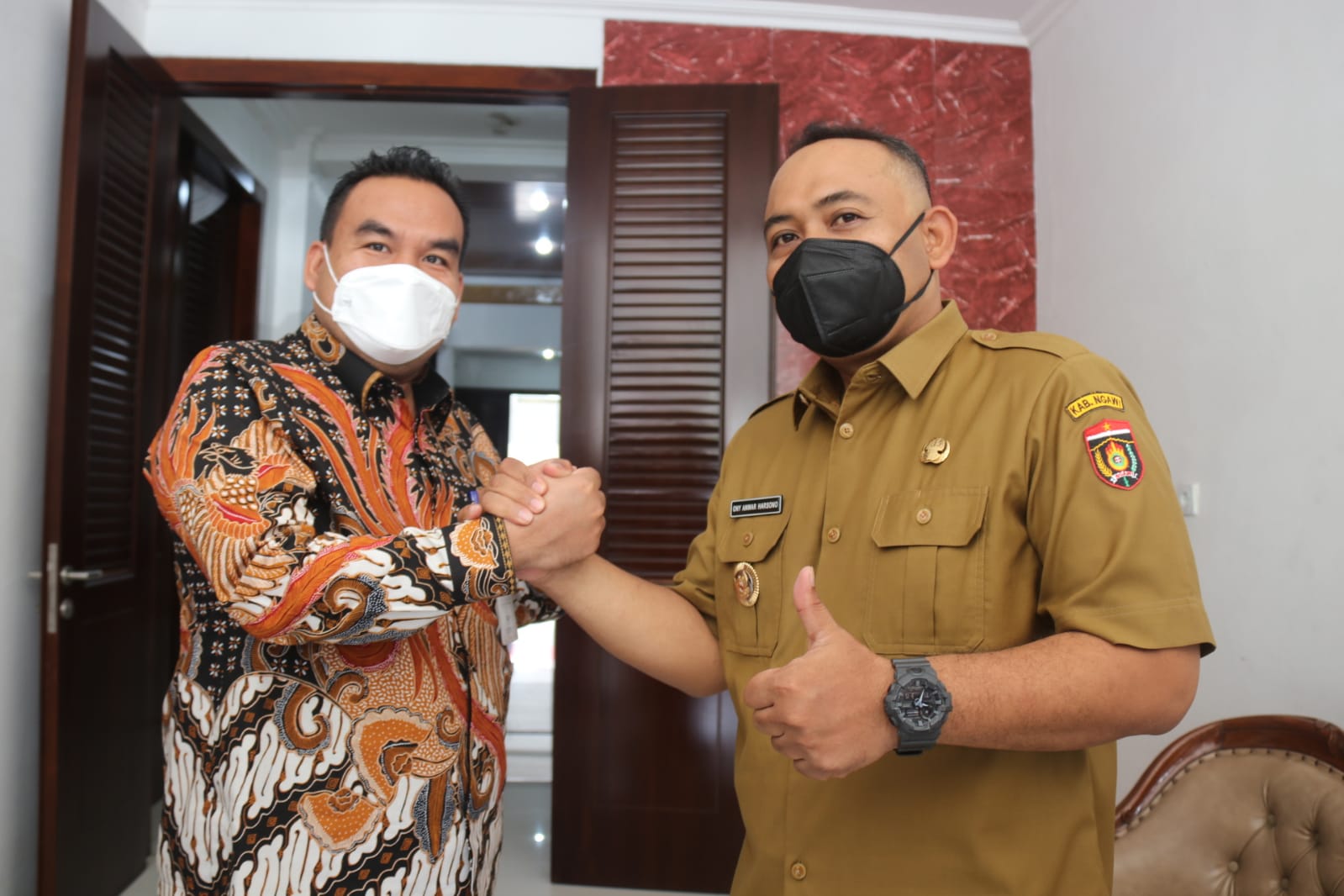 “Ya, benar, Mas Bupati Ngawi ini sahabat lama kami. Kita ingin bangun sinergitas antar daerah untuk membangun kawasan. Ada tiga hal yang kita diskusikan tadi di dalam, yakni pertama terkait rencana pembangunan Bendung Gerak Karangnongko yang diupayakan masuk proyek strategis nasional. Bendung gerak ini mana akan membendung Sungai Bengawan Solo di Kecamatan Kradenan,” ucap Bupati Arief.
