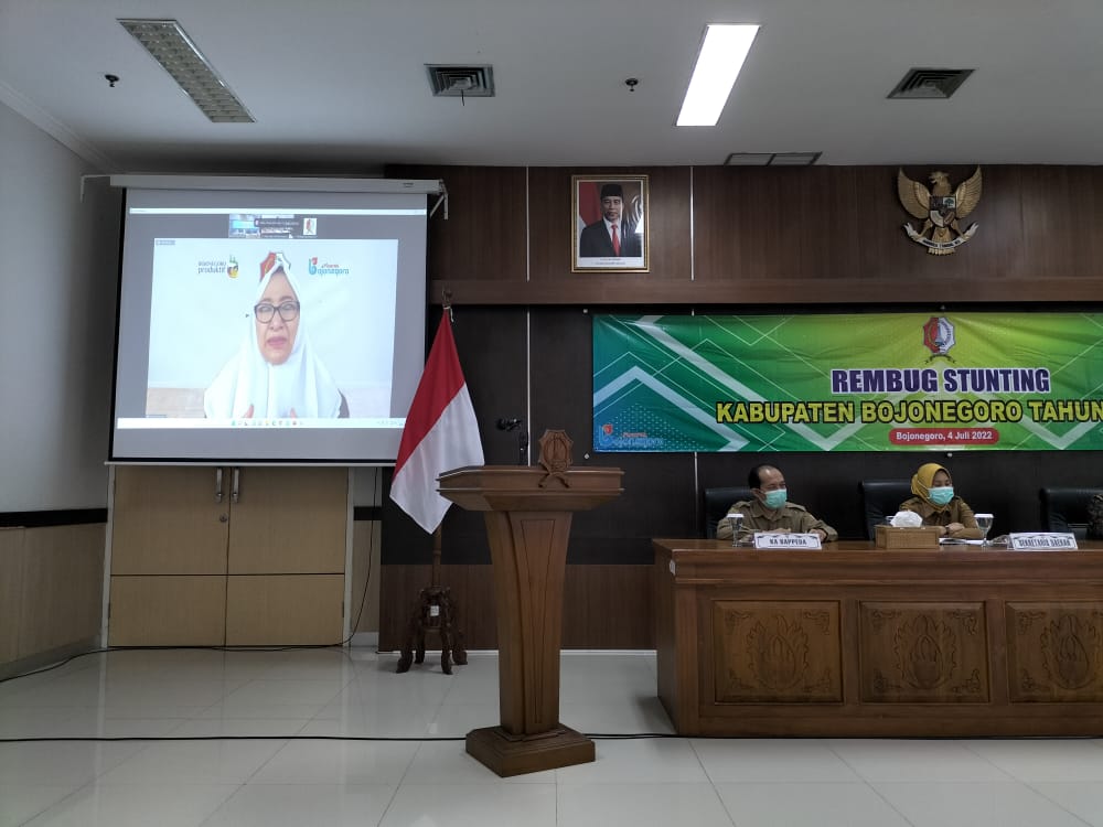 Pemerintah Kabupaten Bojonegoro, Jawa Timur, menggelar acara Rembug Stunting Kabupaten Bojonegoro Tahun 2022, kegiatan dilangsungkan di Partnership Room, Lantai IV, Senin, (4/7/2022).