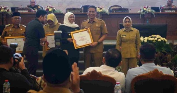 Penghargaan tersebut diserahkan langsung oleh Gubernur Jawa Timur Khofifah Indar Parawansa dalam kegiatan Rapat Koordinasi Forum Koordinasi Pimpinan Daerah (Forkopimda) Provinsi Jawa Timur 2025, yang digelar di Hall Grand City Surabaya, Selasa 04/11/2025.
