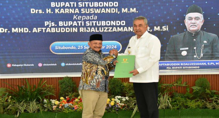 Akhirnya mulai hari ini Penjabat Sementara (Pj) Bupati Kabupaten Situbondo, resmi dijabat oleh Muhammad Aftabuddin Rial Uzzaman, hingga 23 November 2024 mendatang. Hal tersebut diketahui setelah diterimanya nota pengantar tugas dari Bupati Situbondo, Karna Suswandi, di pendopo Situbondo.