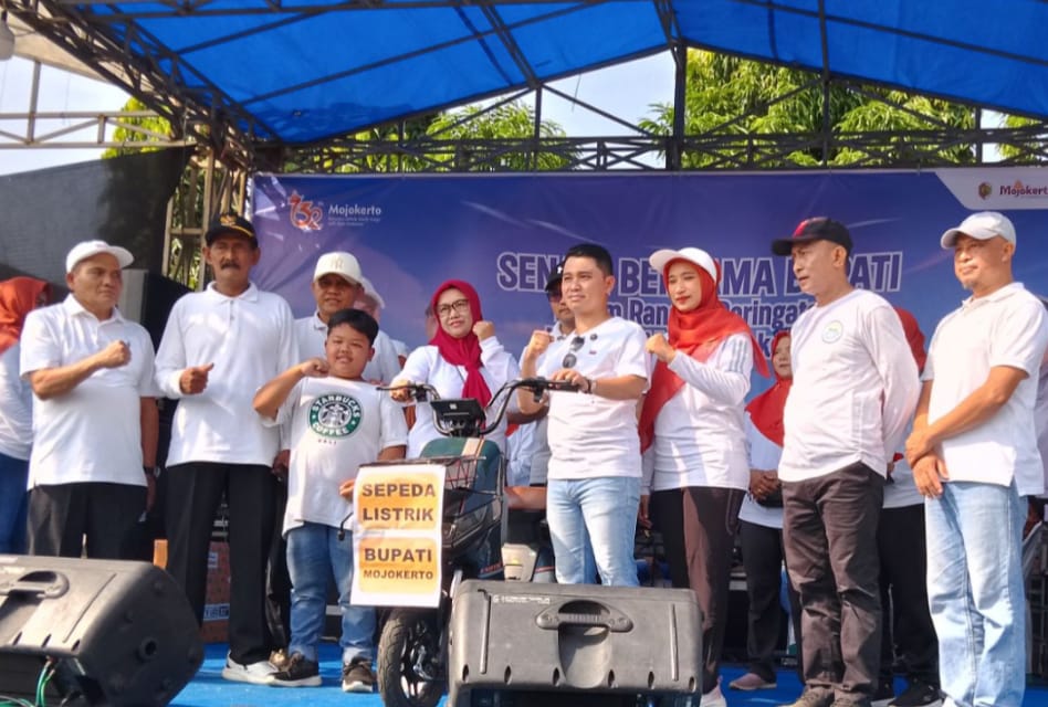 Dalam rangka memperingati Hari Jadi Kabupaten Mojokerto ke-732, Bupati Mojokerto Dr. H. Muhamad Al Barra ( Gus Barra ) bersama jajaran pejabat Pemerintah Kabupaten (Pemkab) Mojokerto dan masyarakat umum mengikuti kegiatan senam sehat di Lapangan Desa Tumapel, Kecamatan Dlanggu, Minggu (27/4/2025).