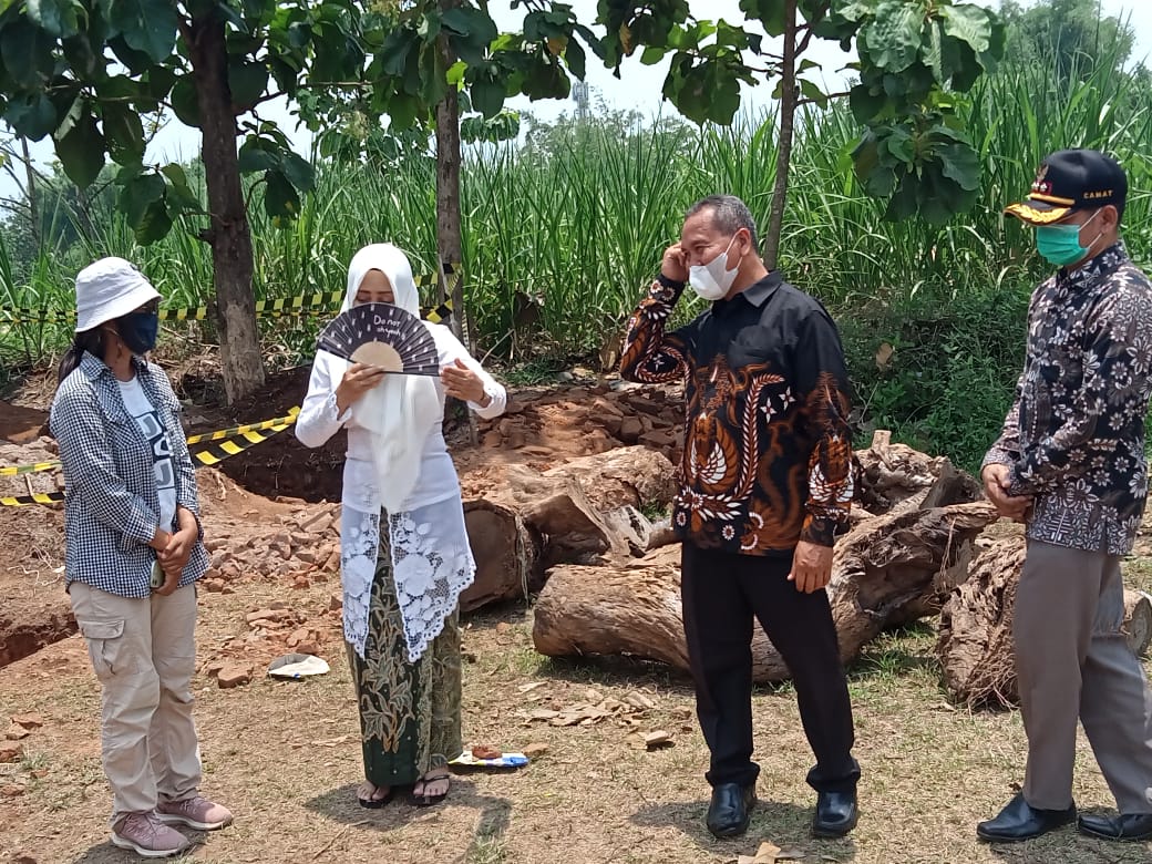 Bupati Ikfina didampingi Camat Masluchman dan Kades Zainal Abidin Meninjau Ekskavasi Situs Bhre Kahuripan di Desa Klinterejo