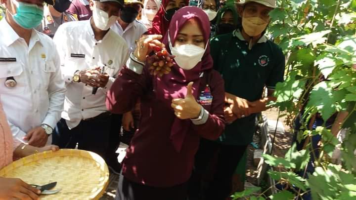 Bupati Mojokerto dr. Ikfina Fahmawati, M.Si, didampingi Wakil Ketua DPRD, Hj. Setia Puji Lestari, M.Si, bersama Drs. H.Teguh Gunarko Kadis Pertanian, Camat Sooko Masluchman, SH, M.Si, dan Kepala Desa Kedungmaling, H. Edy Prabowo, SH, meresmikan “Wisata Kampung Anggur” Desa Kedungmaling, Kecamatan Sooko, Rabu (29/9).