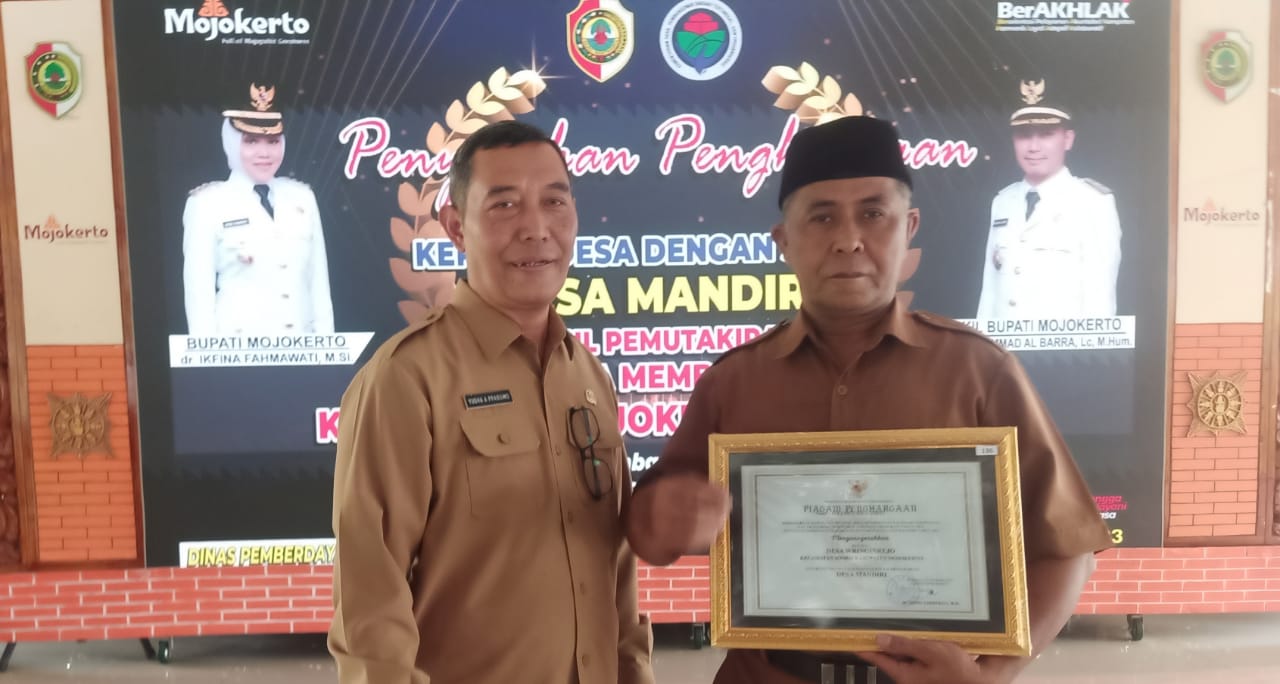 Penganugerahan predikat desa mandiri berdasarkan capaian dan hasil pemutakhiran Indeks Desa Membangun (IDM). Dari 299 desa di Kabupaten Mojokerto, total sudah ada 219 desa yang menerima penghargaan tersebut mulai tahun 2022 dan 2023.