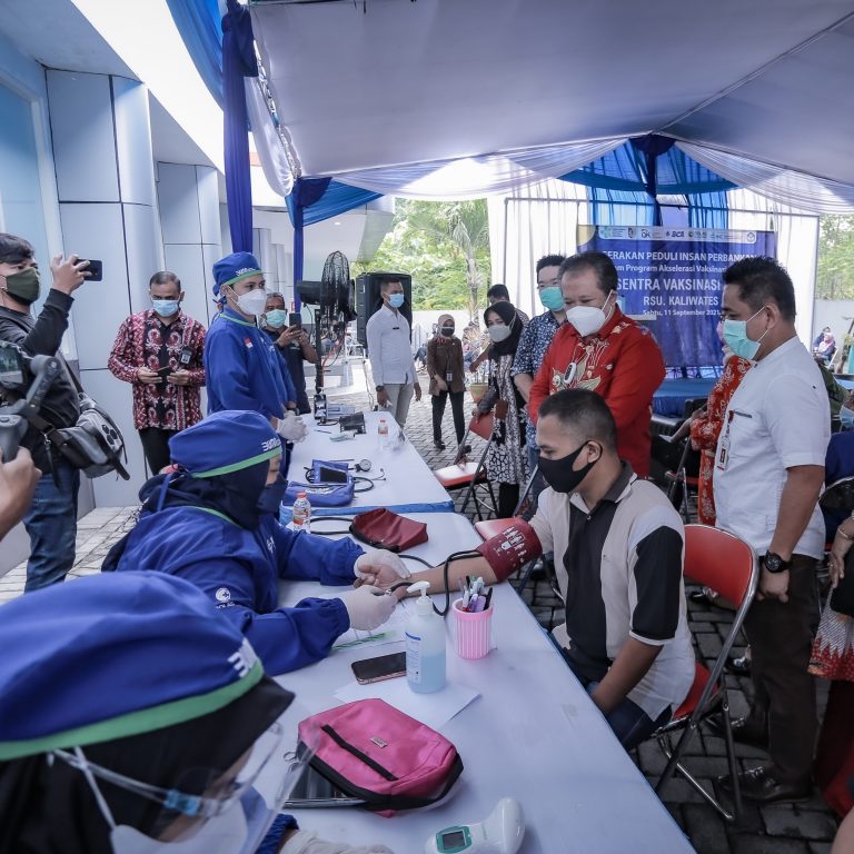 Bupati Jember Ir. H. Hendy Siswanto meninjau pelaksanaan vaksinasi yang berlangsung di RSU Kaliwates, Sabtu pagi (11/09/2021). Giat vaksinasi untuk warga Kabupaten Jember ini diinisiasi oleh manajemen Bank Central Asia (BCA) Cabang Jember.