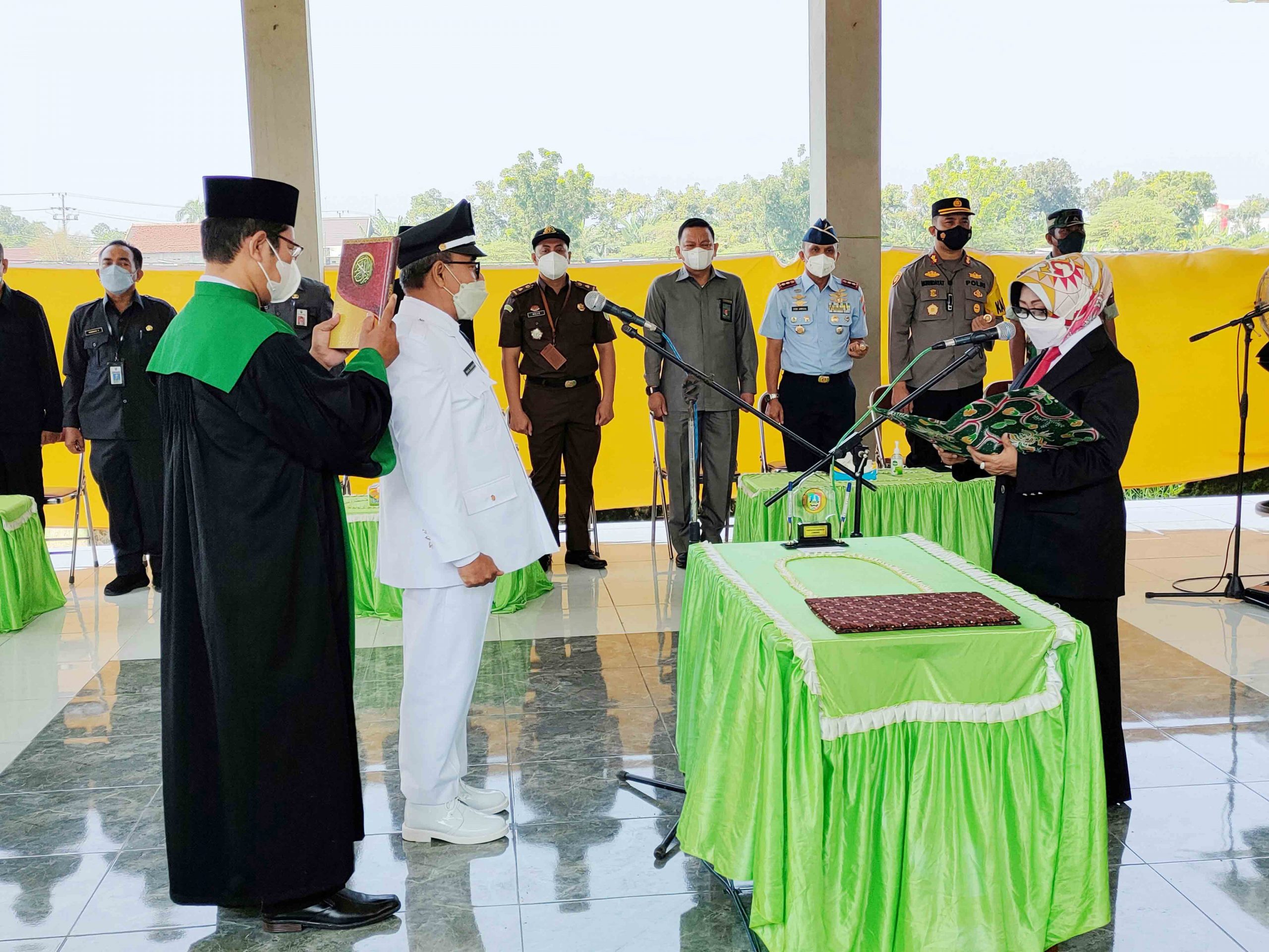 Bupati Jombang Hj. Mundjidah Wahab mengambil sumpah/janji dan melantik Imam Wahyudi sebagai Kepala Desa Pengganti Antar Waktu, Desa Pagerwojo, Kecamatan Perak, Kabupaten Jombang pada , Senin (11/4/2022) pagi.