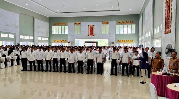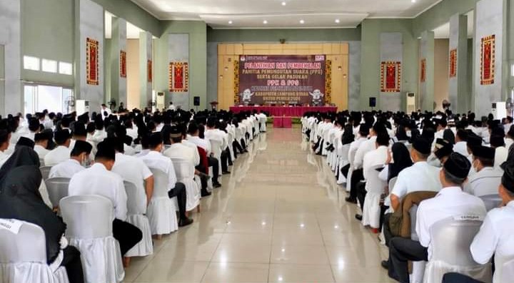 Bupati Lampung Utara, H. Budi Utomo yang diwakili Asisten I, Mankodri. SH. MM. Menghadiri Acara Pelantikan dan Pembekalan Badan Ad Hoc Panitia Pemungutan Suara (PPS) Kabupaten Lampung Utara di Gedung Serba Guna Islamic Center Kotabumi.