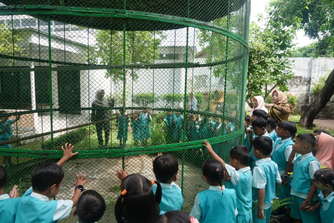 Di belakang rumah dinas, Bupati Ikfina memperkenalkan berbagai hewan seperti kucing, ikan, kelinci, dan burung. Ia juga mengajak para murid untuk bernyanyi bersama. “Ada yang tau burung apa ini?,” tanya Bupati Ikfina sembari mengajak menyanyikan lagu burung kakak tua.
