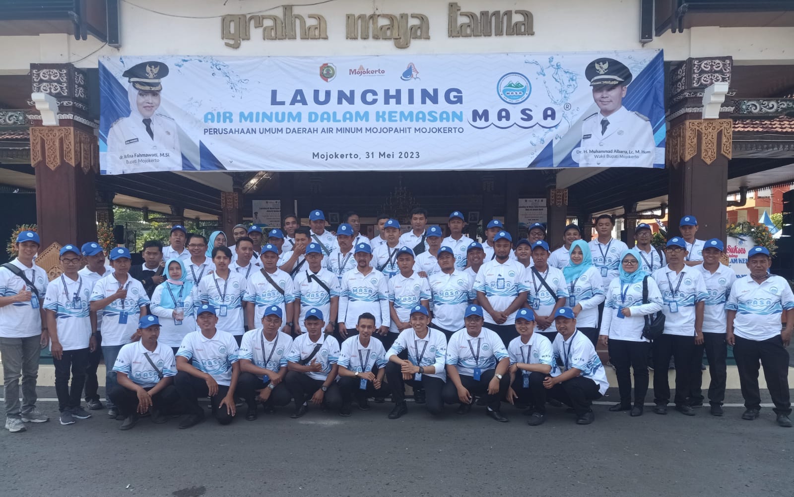 Sementara itu acara Launching Produk Air Kemesan MASA yang diproduksi oleh PERUMDAM Majapahit Mojokerto ini dilakukan oleh Bupati Ikfina didampingi oleh Sekdakab Drs. Teguh Gunarko, bersama Ketua Dewan Pengawas PERUMDAM Mojopahit Mojokerto Luthfi Ariyanto, M. Si, Didampingi Direktur PERUMDAM Mojopahit Mojokerto H. Fayakun Hidayat SH ini juga diwarnai dengan sajian kesenian Majapahitan Sandra tari, dan pemutaran Vidio Profil produk Air kemesan PERUMDAM Mojopahit Mojokerto dan pemotongan Tumpeng serta acara peninjauan lokasi pameran produk Air kemesan PERUMDAM Majapahit Mojokerto yang dipajang di halaman Pemkab Mojokerto.