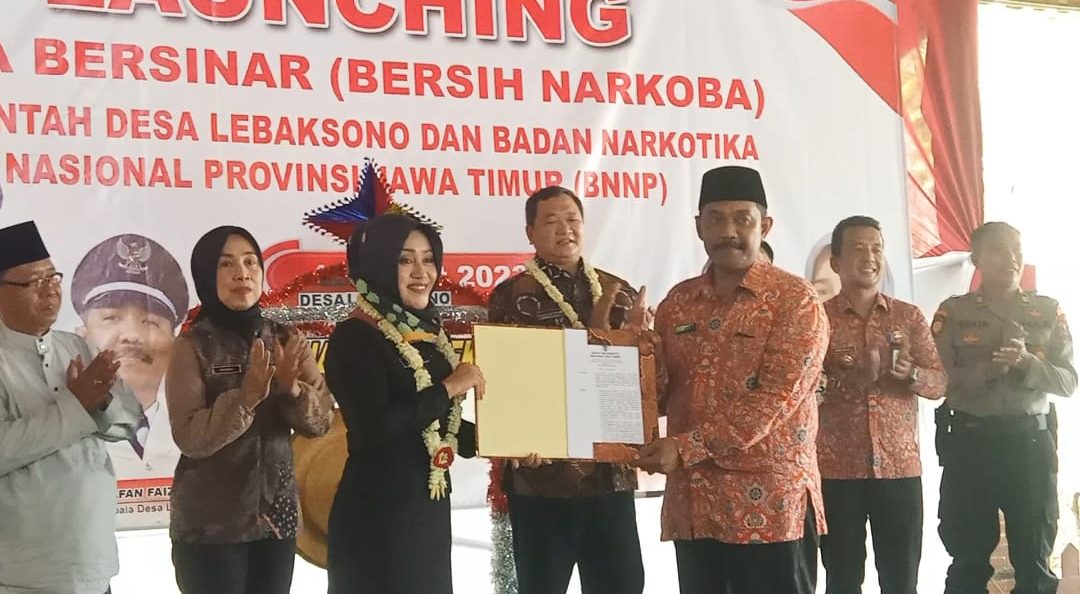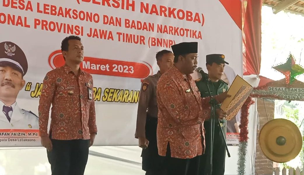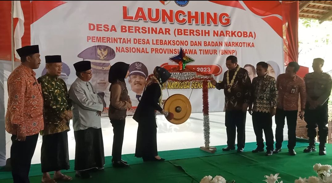 Sementara itu Kepala BNN Propinsi Brigjen Pol. M. Aris Purnomo, dalam sambutannya mengatakan, kita sebelumnya sudah mendatangi dor to dor ke beberapa Desa yang ada di Kabupaten Mojokerto untuk dijadikan Desa Bersinar, dengan progam satu tahun bersama-sama perangkat Desa, supaya Desa tersebut mempunyai ketahanan untuk menolak Narkoba, Alhamdulillah di Desa Lebaksono Kecamatsn Pungging ini bisa Menjadi Desa Narkoba dan hari ini bisa di Lounching menjadi Desa Bersih Narkoba (Bersinar).