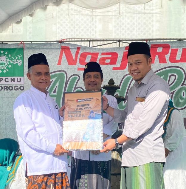 Tunai sudah niat Bupati Ponorogo Sugiri Sancoko berdonasi untuk korban perang di Palestina. Dana hasil lelang dua unit Vespa Super lansiran 1972 dan 1974 senilai Rp 36,5 juta koleksi Kang Bupati –sapaan Bupati Sugiri Sancoko—sempat berpindah tangan ke Ketua Tanfidziyah PCNU Ponorogo Fatchul Azis yang menyerahkannya kepada Ketua Lembaga Amil Zakat, Infak, dan Sedekah Nahdlatul Ulama (LAZISNU) Ponorogo Tohir Fauzi.