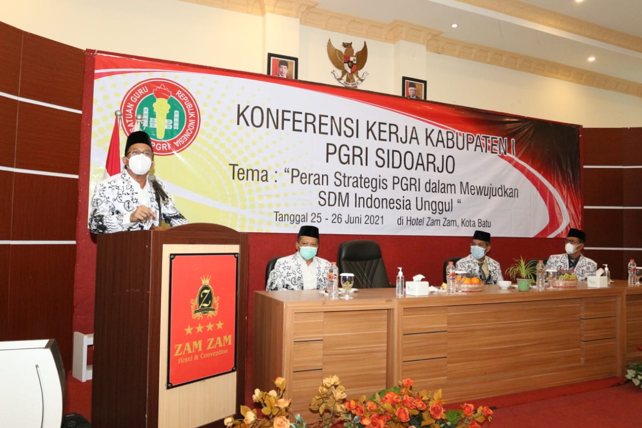 PGRI Sidoarjo menggelar Konferensi Kerja Kabupaten (Konkerkab) yang pertama kali di Hotel Zam Zam Kota Batu, Jumat, (25/6). Bupati Sidoarjo H. Ahmad Muhdlor Ali S.IP hadir langsung untuk membuka pelaksanaanya.