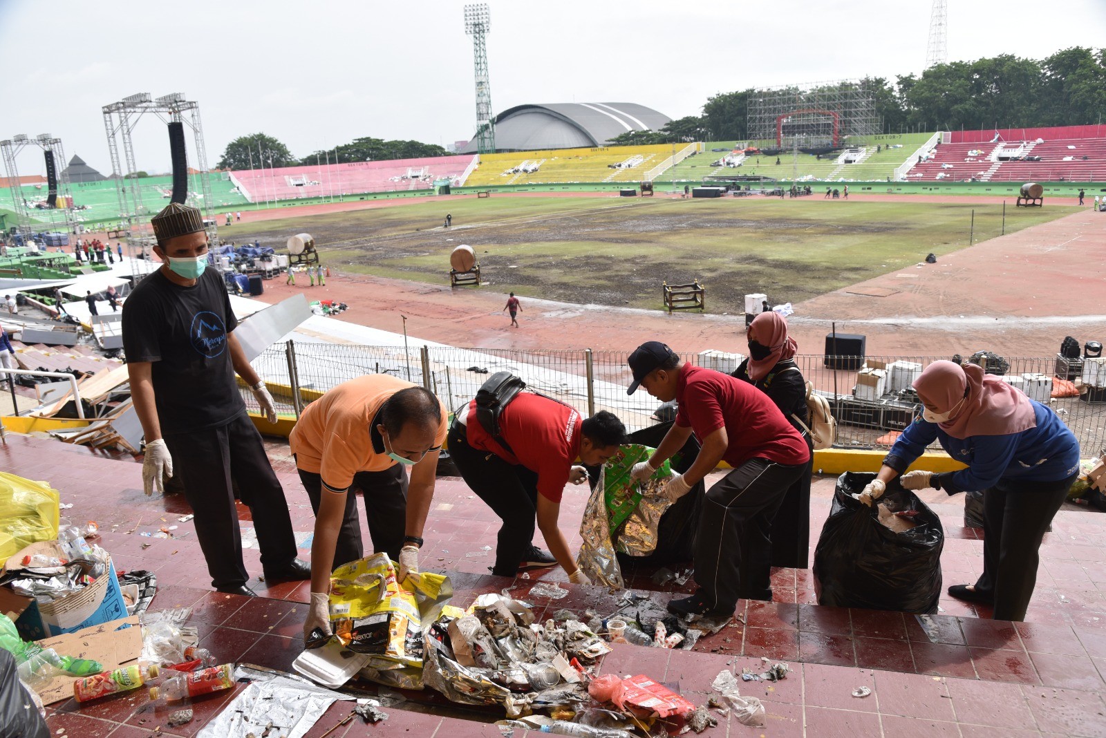“Kebetulan kantor dekat (GOR) ya, kita bersihan sampah didepan kantor kemudian menyisir sampai ke stadion,”ujarnya.
