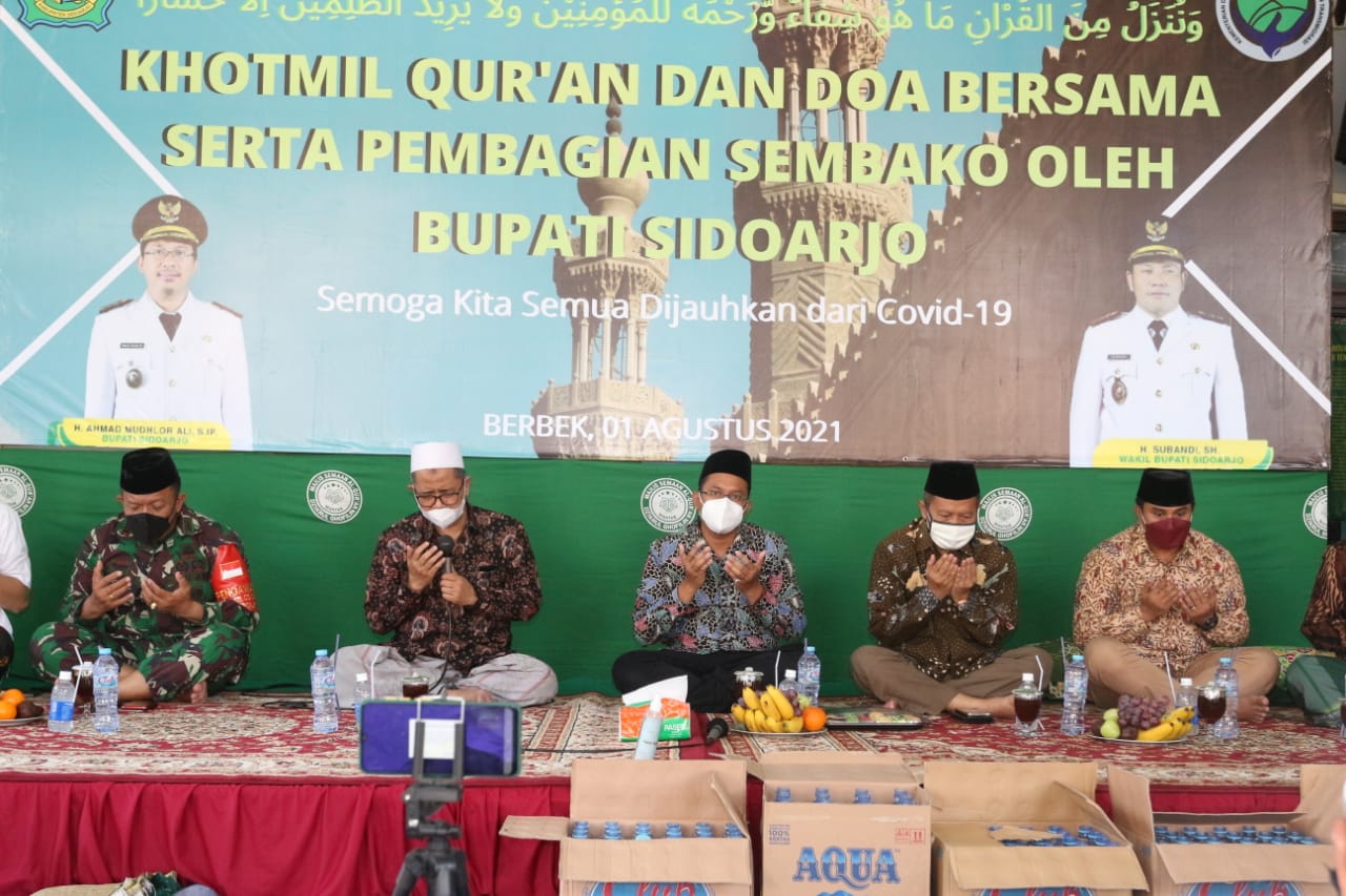 Pembagian Bansos dibarengi dengan kegiatan Khotmil Quran dan doa bersama dengan protokol kesehatan Covid-19 diterapkan sangat ketat. Kegiatan doa bersama yang dipimpin oleh KH. Nur Kholis Aziz al Hafidz tersebut.
