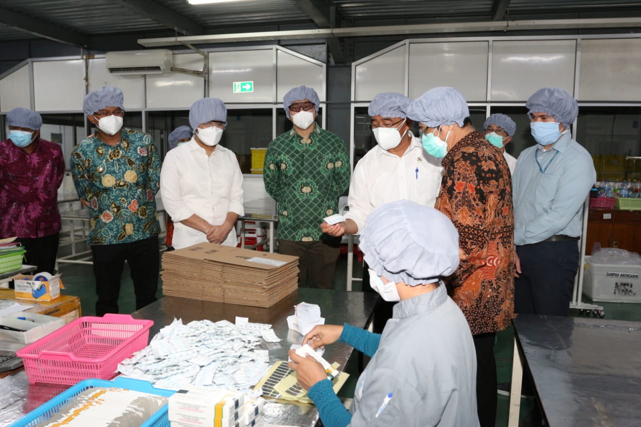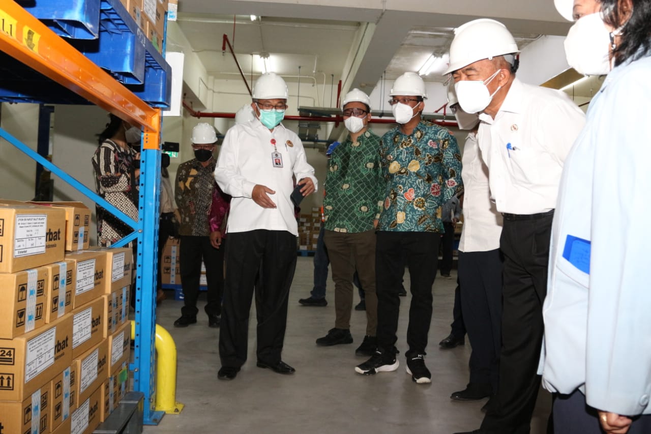 Menteri Koordinator Bidang Pembangunan Manusia dan Kebudayaan RI Muhadjir Effendy mengunjungi PT. Interbat yang berada di Kabupaten Sidoarjo, Selasa, (13/7). Kedatangannya untuk memastikan produksi obat perawatan bagi pasien Covid-19 yang diproduksi industri farmasi tersebut masih berjalan. Kunjungan kerja Menko PMK RI yang didampingi oleh Wakil Gubernur Jatim Emil Elestianto Dardak siang tadi diterima oleh Bupati Sidoarjo H. Ahmad Muhdlor S.IP. Sebelumnya Muhadjir Effendy juga telah meninjau gudang penyimpanan obat di Dinas Kesehatan Jatim.