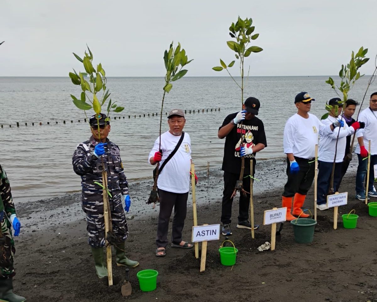 Bupati Situbondo Yusuf Rio Wahyu Prayogo bersama Asosiasi Tambak Insentif (Astin) melakukan kegiatan penanaman 1.000 pohon mangrove di kawasan Pantai Sedulur, Desa Peleyan, Kecamatan Panarukan, Kamis 13 November 2025 pagi.