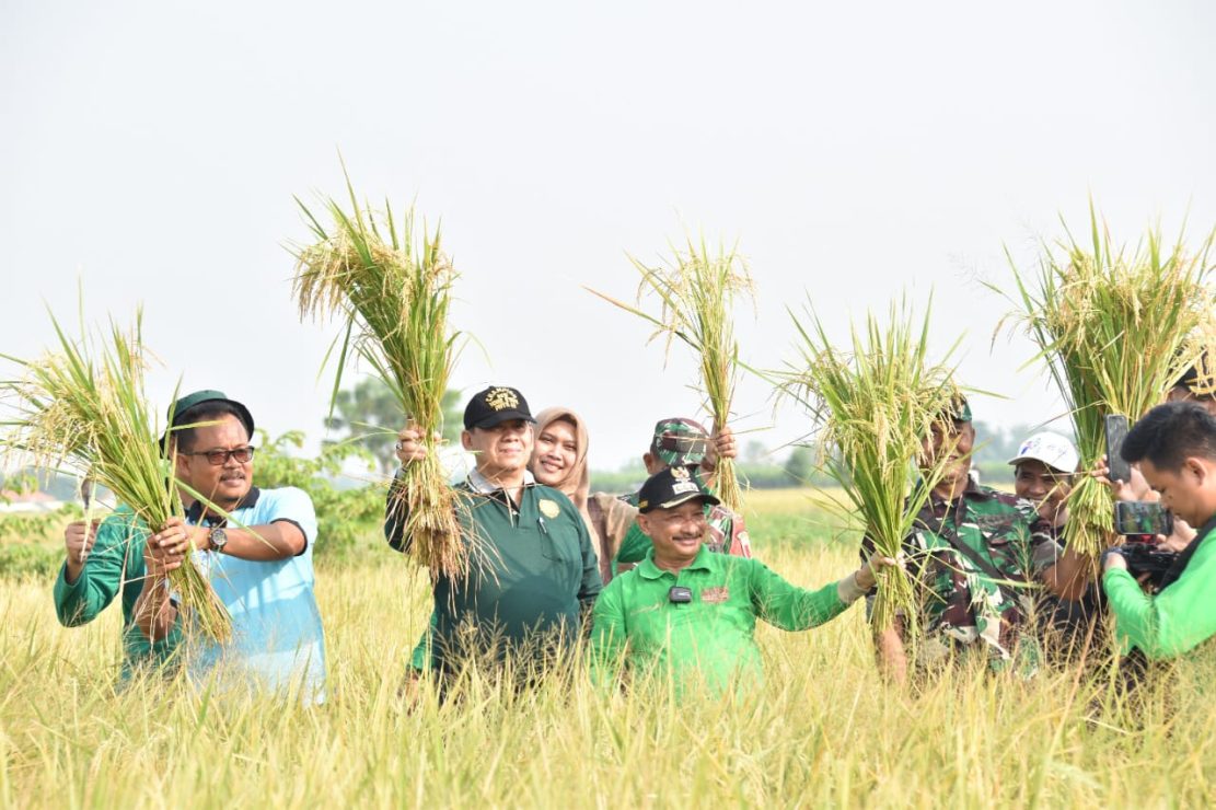 Dalam rangka meningkatkan Produksi Pangan Bupati Situbondo Karna Suswandi bersama Sekretaris Daerah Kabupaten Situbondo, Wawan Setiawan dan petani melaksanakan panen padi bibit varietas unggul BK 01 dan 02 Agritan di Desa Talkandang, Kecamatan Kota, Kabupaten Situbondo, Jumat (23/02/2024).