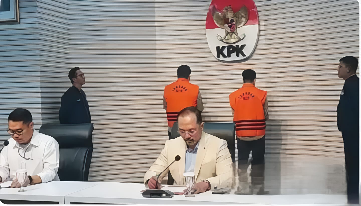 Kegiatan konferensi pers ini dipimpin Direktur Penyidikan KPK, Asep Guntur Rahayu, didampingi Jurubicara KPK, Tessa Mahardhika Sugiarto.