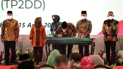 Disaksikan Gubernur Jatim dan Wagub Jatim, enam belas bupati/walikota selaku Ketua Satgas TP2DD di daerahnya masing-masing tersebut melakukan penan datanganan komitmen bersama menjalankan program percepatan TP2DD di daerahnya masing-masing. Kamis, (15/4/2021) di Shangrilla Hotel Surabaya bersa maan dengan kegiatan Musrenbang Jatim.