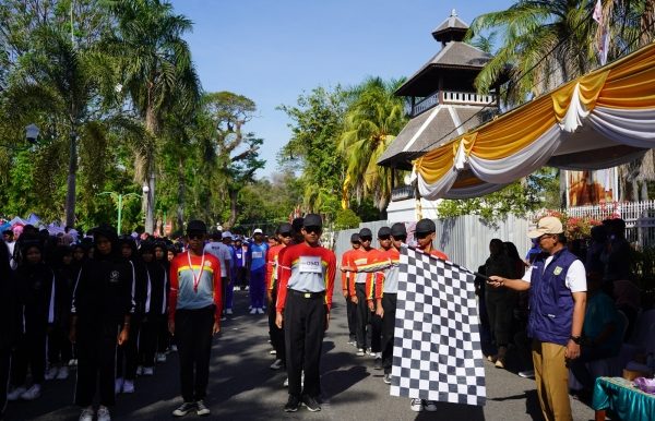 Bupati Sumbawa yang diwakili Staf Ahli Bidang SDM dan Kemasyarakatan Kabupaten Sumbawa, Rosmin Junaedi, S.Pt. M.Si, secara resmi membuka sekaligus melepas peserta gerak jalan Ketepatan Waktu tingkat SMP/ MTs dan SMA/MA Dalam rangka memeriahkan Hari Ulang Tahun (HUT) Ke-80 Kemerdekaan Republik Indonesia, bertempat di Lapangan Pahlawan Sumbawa, Selasa (12/8) 2025.