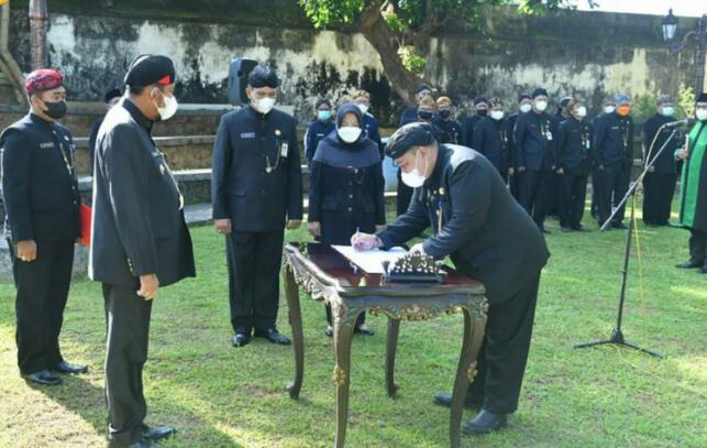 Bupati sumenep, Achmad fauzi, S.H.,M.H resmi melantik dan mengambil sumpa lima pejabat pimpinan tertinggi pratama(PPTP) hasil seleksi terbuka di Roma Andhap Asor, komplek keraton sumenep, madura,jawa timur, senin (04/04/2022).
