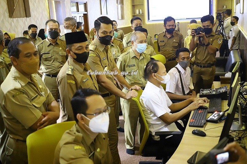 “Semua kegiatan di seluruh wilayah Kabupaten Tuban bisa dipantau di sini. Aktivitas pejabat dan ASN tingkat kabupaten hingga kecamatan juga bisa dipantau,” ucap Mas Bupati.
