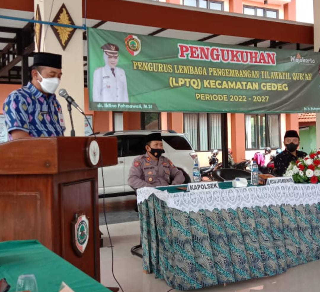 Pengukuhan Lembaga pengembangan Tilawatil Quran di Wilayah Kecamatan ini di kukuhkan oleh Camat Gedeg, M. Taufiqurrahman, S. STP, MM, Selasa, (30 /08 /2022) di Pendopo Kecamatan Gedeg Kabupaten Mojokerto.