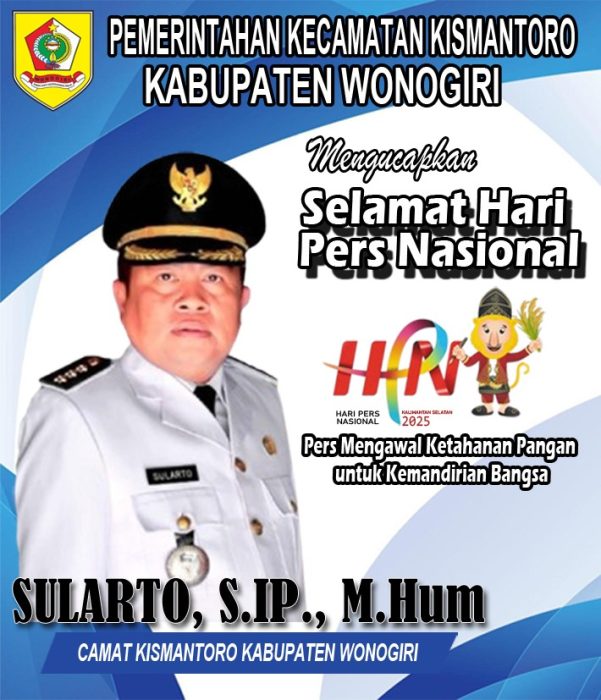 Camat Kismantoro Kabupaten Wonogiri mengucapkan Selamat Hari Pers Nasional 2025