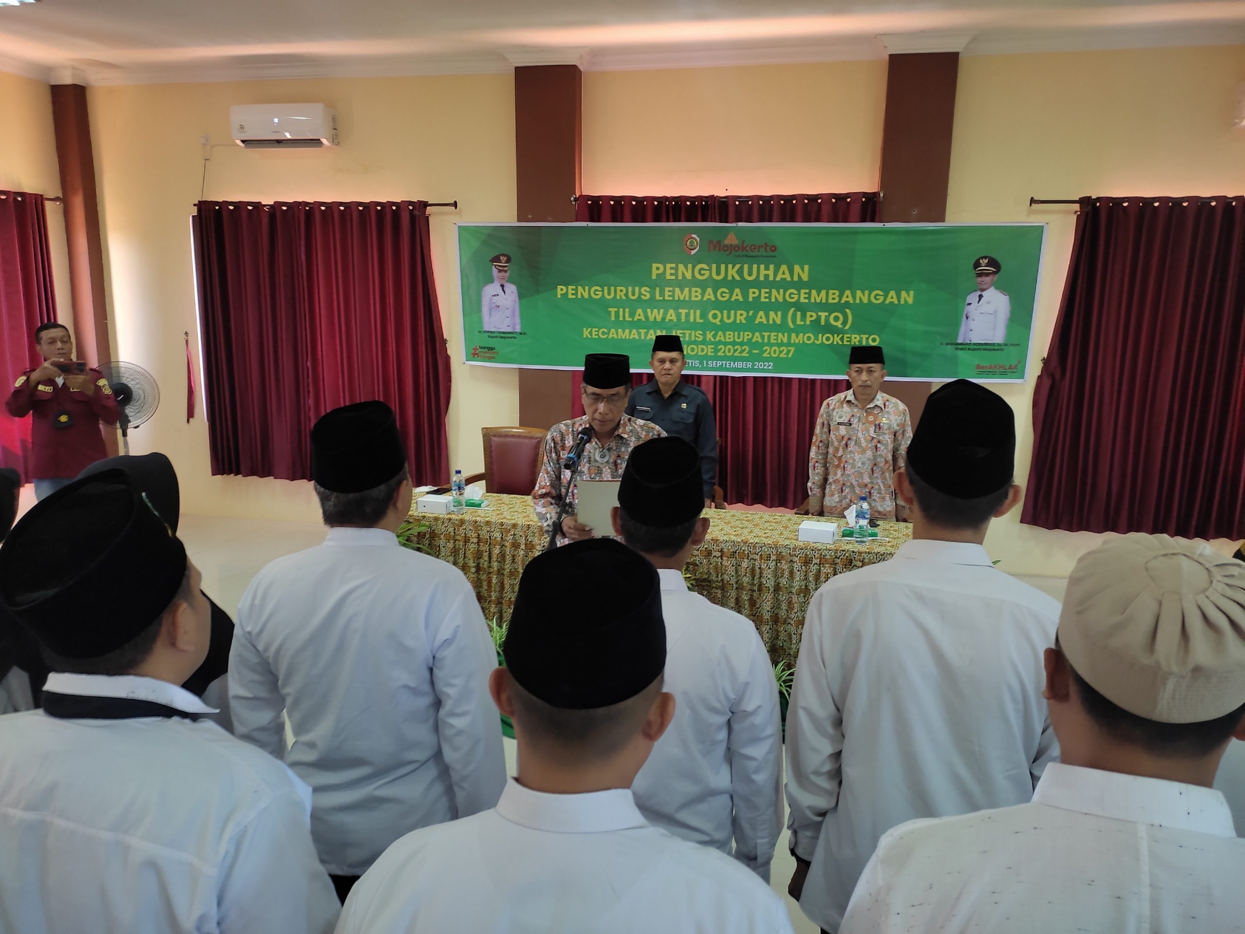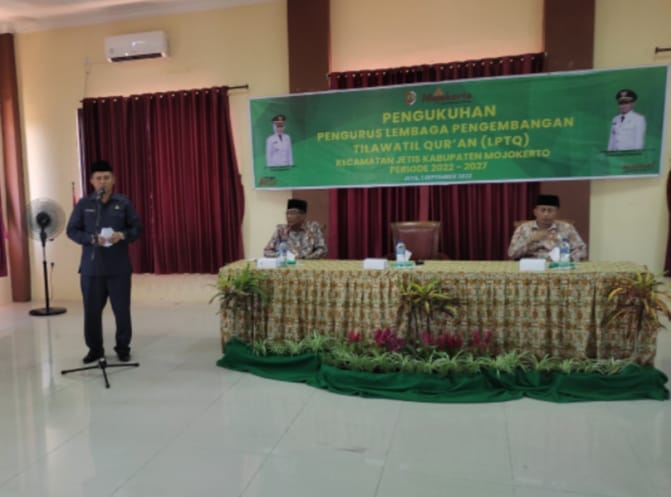 Camat Jetis Madya Andriyanto, S.Sos, MM, mengukuhkan Kepengurusan Lembaga Pengembangan Tilawatil Qur’an ( LPTQ ) Kecamatan Jetis Kabupaten Mojokerto Periode 2022 – 2027 di Kantor Kecamatan Jetis lantai 3, Kamis siang (01/08/2022 )