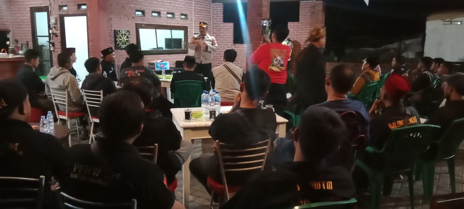 Berbagai perguruan pencak silat yang tergabung dalam Ikatan Pencak Silat Indonesia (IPSI) di Kecamatan Balongbendo, melaksanakan cangkrukan kamtibmas bersama Polisi, Rabu (15/2/2023) malam di Desa Kedung Sukodani, Balongbendo, Sidoarjo.