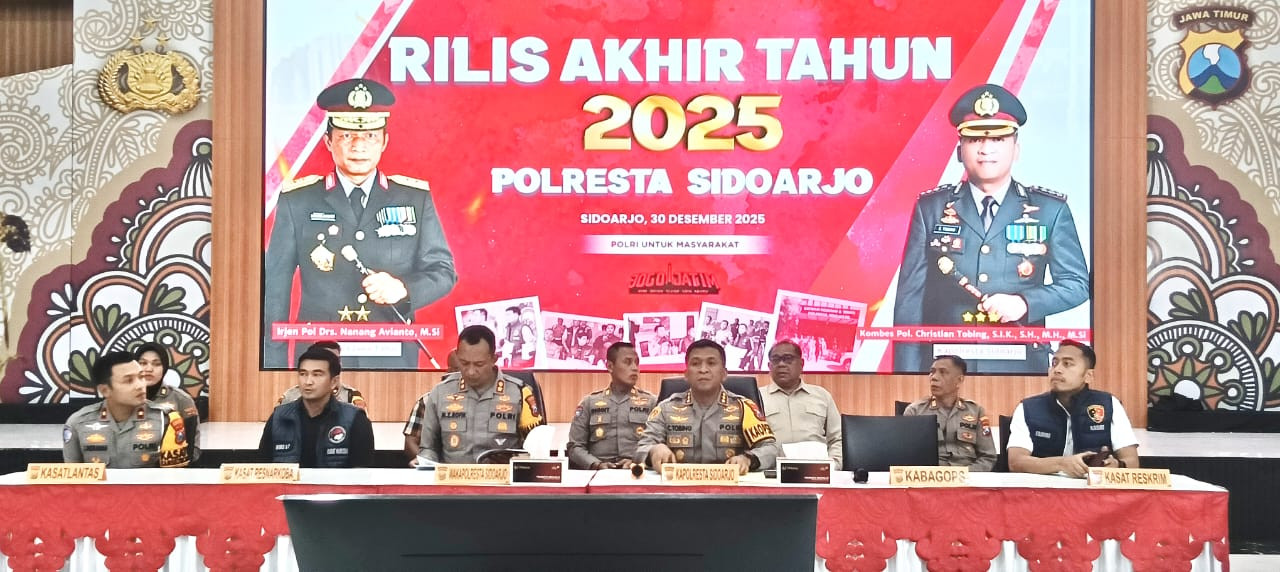 Rilis kinerja tersebut disampaikan langsung Kapolresta Sidoarjo Kombes Pol Christian Tobing di Gedung Mapolresta Sidoarjo, Selasa (30/12/2025).