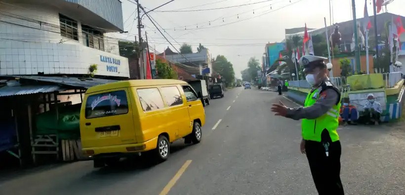 Sealain melaksanakan pengaturan arus lalu lintas Juga Satuan Lalu Lintas dan Sat Samapta Polres Dompu Meberikan himbauan kepada masyarakat agar menggunkan masker pada saat berkendara dan mematuhi protokol Covid-19