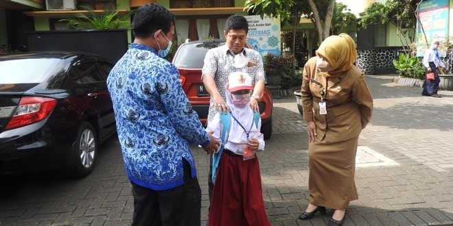 Pada hari pertama masuk sekolah, Dinas Pendidikan dan Kebudayaan (Disdikbud) Kota Malang mengenalkan kurikulum Merdeka Belajar di SMP Negeri 1 Malang, Senin, (18/7/2022).
