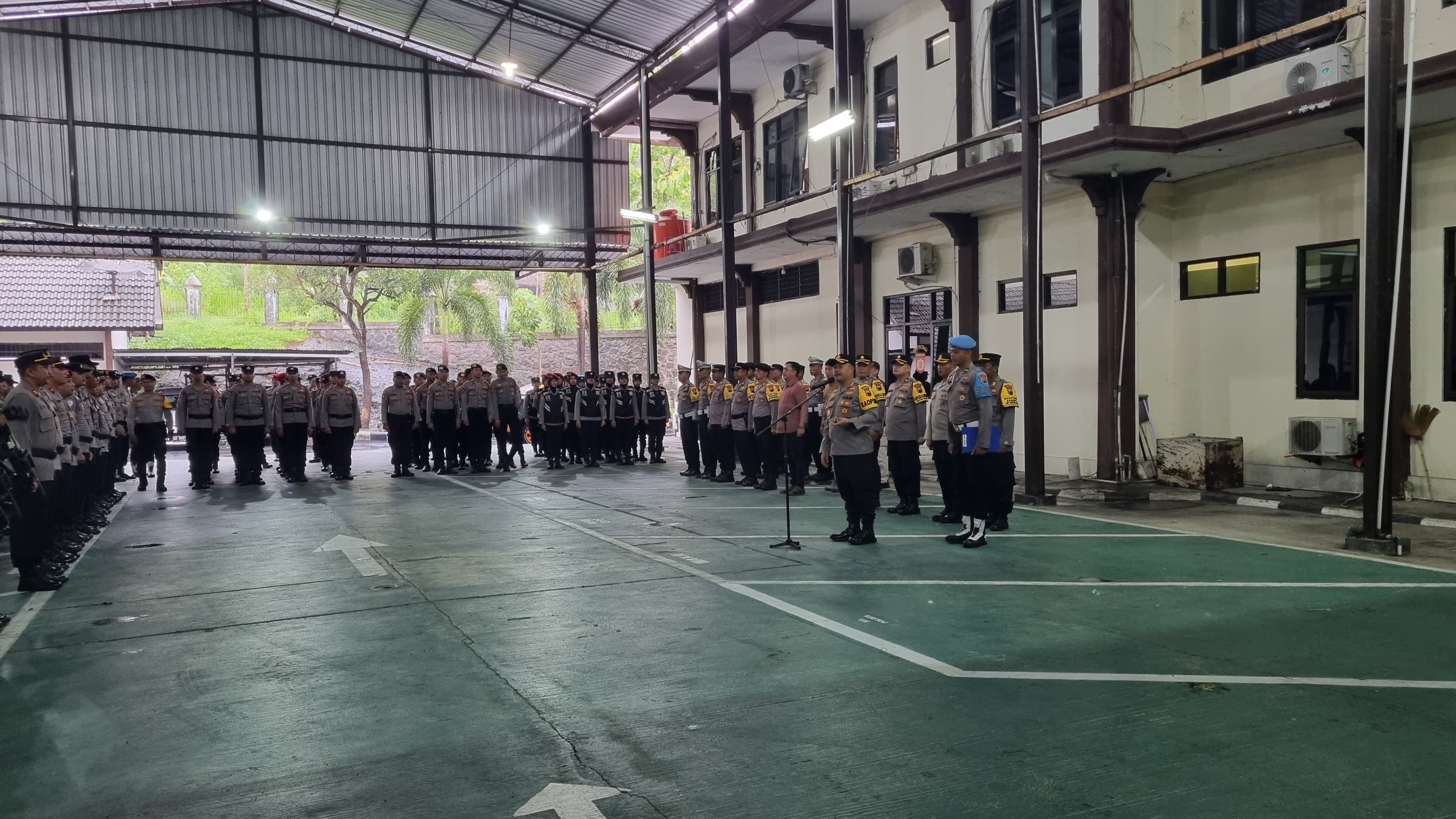 Usai pelaksanaan pengamanan TPS Pilkada 2024, Polres Wonogiri menggelar apel konsolidasi personil BKO di halaman Mapolres Wonogiri, Kamis (28/11/2024).