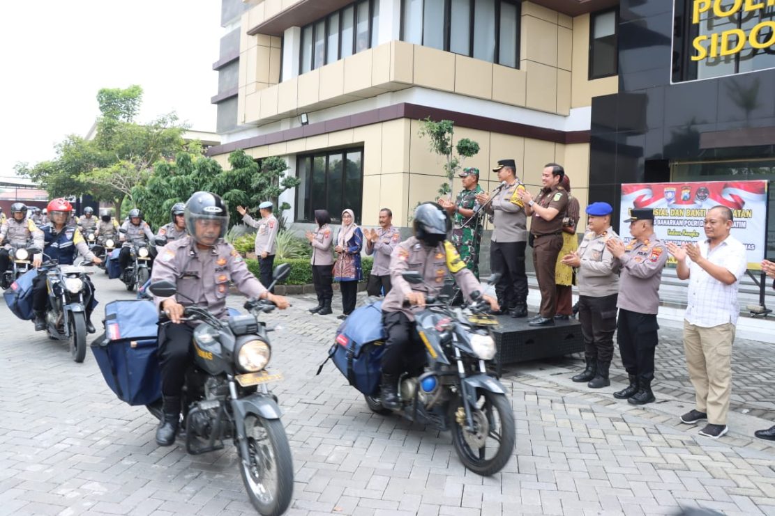 Di wilayah Kabupaten Sidoarjo, pembagian baksos dan kegiatan bakti kesehatan melibatkan Polresta Sidoarjo, Bhabinkamtibmas, Babinsa dan perangkat desa dengan menyasar ke 18 kecamatan.